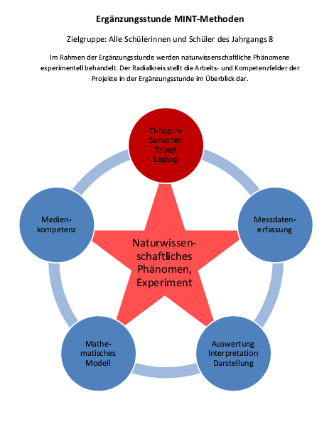 Fächerverbindendes, projektartiges Arbeiten im Team wird mit der THG-Projektstunde (Klasse 7) und der MINT-Methodenstunde (Klasse 8) unter besonderer Berücksichtigung des experimentellen Arbeitens realisiert. Fit machen für internationale Beziehungen sollen dann die Fremdsprachenpraxisstunden in der Jahrgangsstufe 8, aber auch gezielt Defizite ausgleichen. Die Zeugniskonferenzen beraten hier über die passgenaue Zuweisung. In der fakultativen Sozial Genial-Ergänzungsstunde werden die Schülerinnen und Schüler zu Lernbegleitern (Klasse!Paten, MINTarbeiter, Medienscouts etc.) ausgebildet. Das so angelegte soziale Engagement als Lernbegleiter im Rahmen von Peer-Education kann auf diese Weise bürgerschaftliches Engagement vorbereiten. In der Ergänzungsstunde Mathe-Fit für die Oberstufe wird individuell an den Kernthemen des Mathematikunterrichts der Sekundarstufe I gearbeitet, so dass der Übergang in den Mathematikunterricht der Oberstufe erleichtert wird.