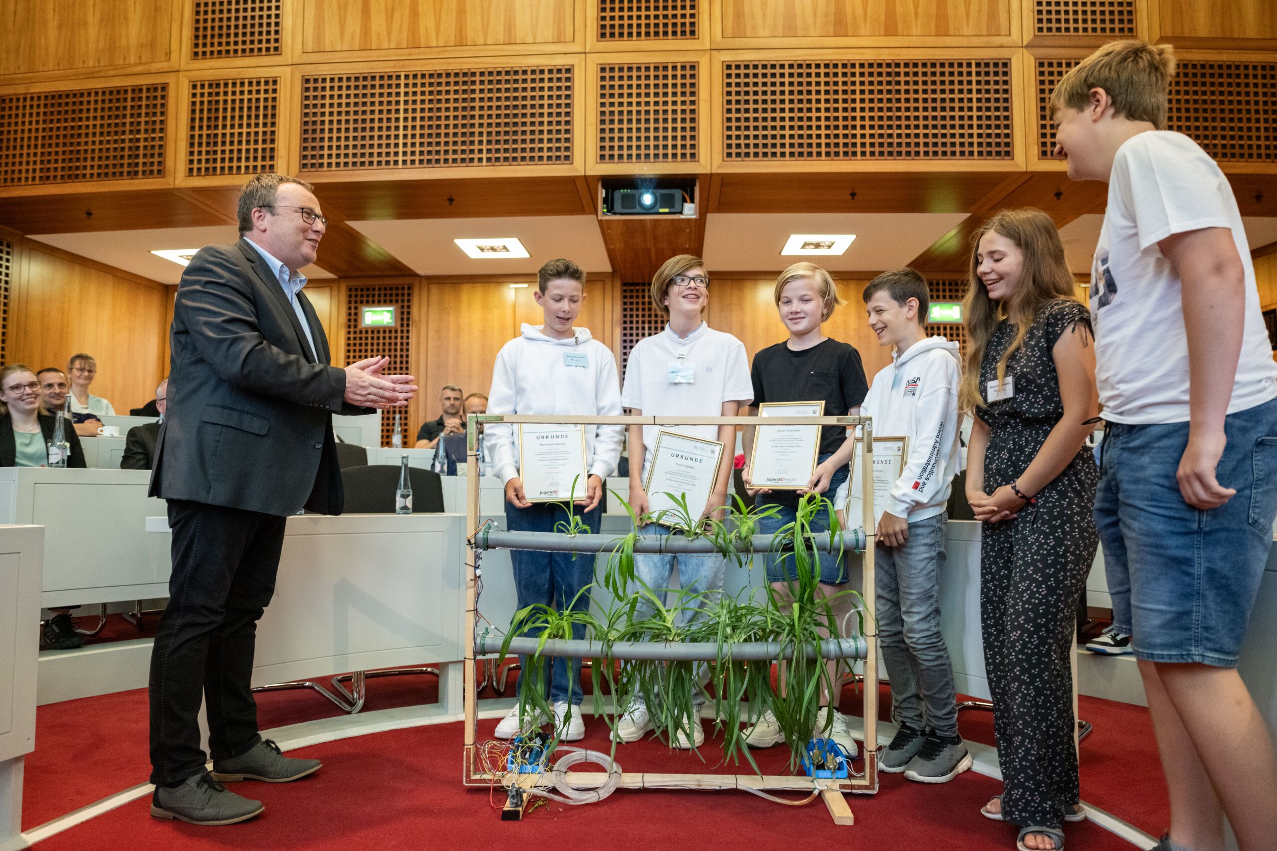 "Ich bin beeindruckt vom kreativen Geist der hoch motivierten jungen Forscherinnen und Forscher. Sie haben sich Zukunftskompetenzen im Sinne einer Bildung für nachhaltige Entwicklung angeeignet und bei ihren Projekten immer die planetaren Grenzen und eine nachhaltige Lebensweise im Hinterkopf gehabt", betonte Minister Oliver Krischer. Die Preisträgerinnen und Preisträger befassten sich mit Fragestellungen auf den Gebieten der nachhaltigen Land- und Gartenwirtschaft, ökologischen Luftreinhaltung, Abbau von Mikroplastik und Bodenbelastung durch Zink.